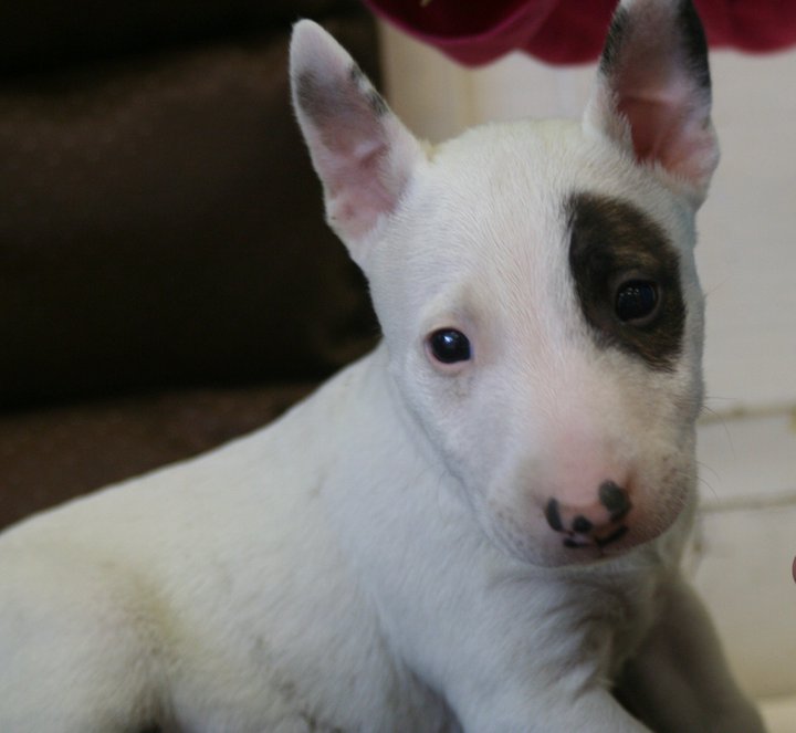 About a week ago, I ran into a lady who runs a pet store in the front part of the building I work in. She also breeds miniature bull terriers. Well one thing lead to another, and I agreed to dog-sit one of the puppies who will be with her until February, then off to his forever home.
